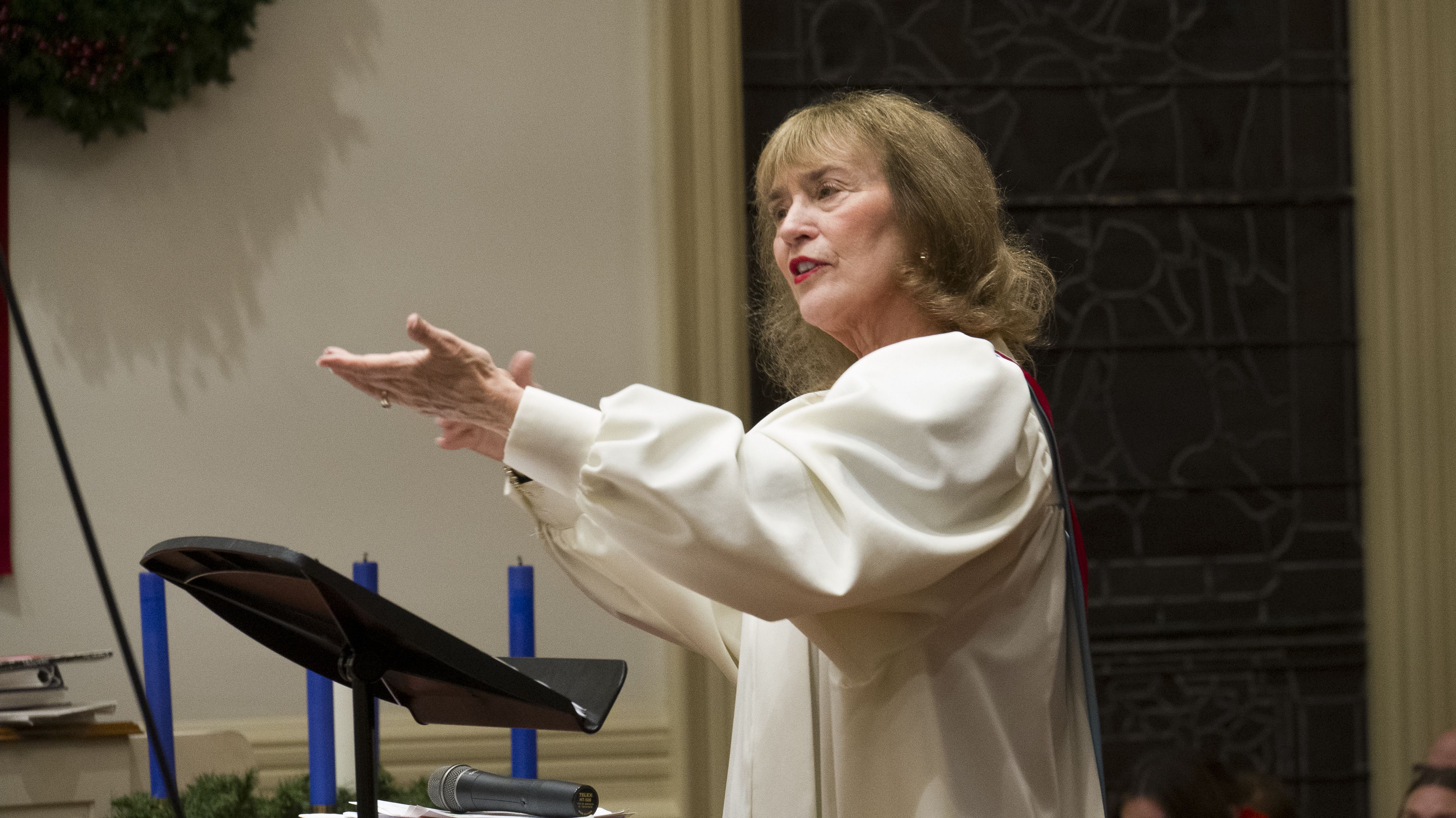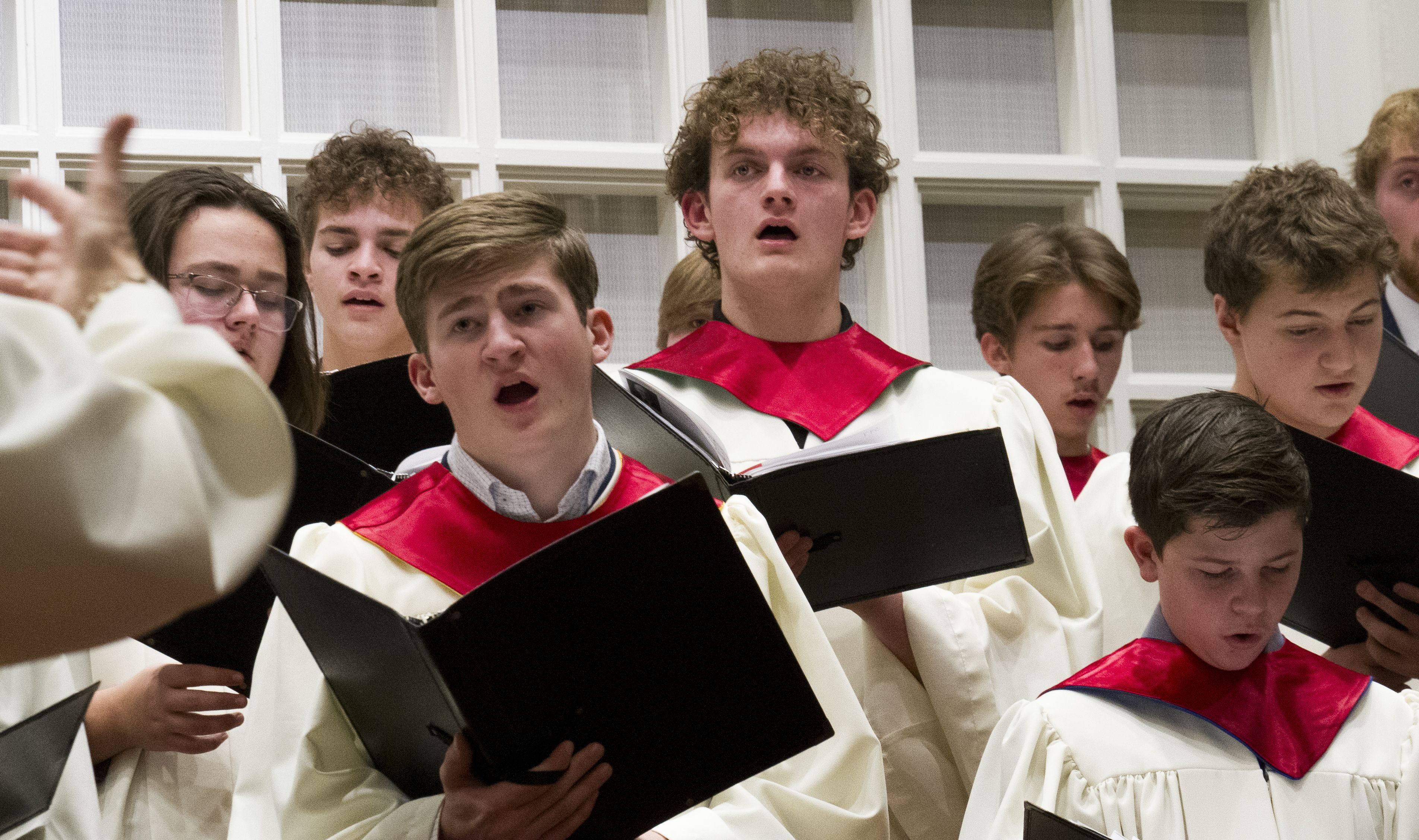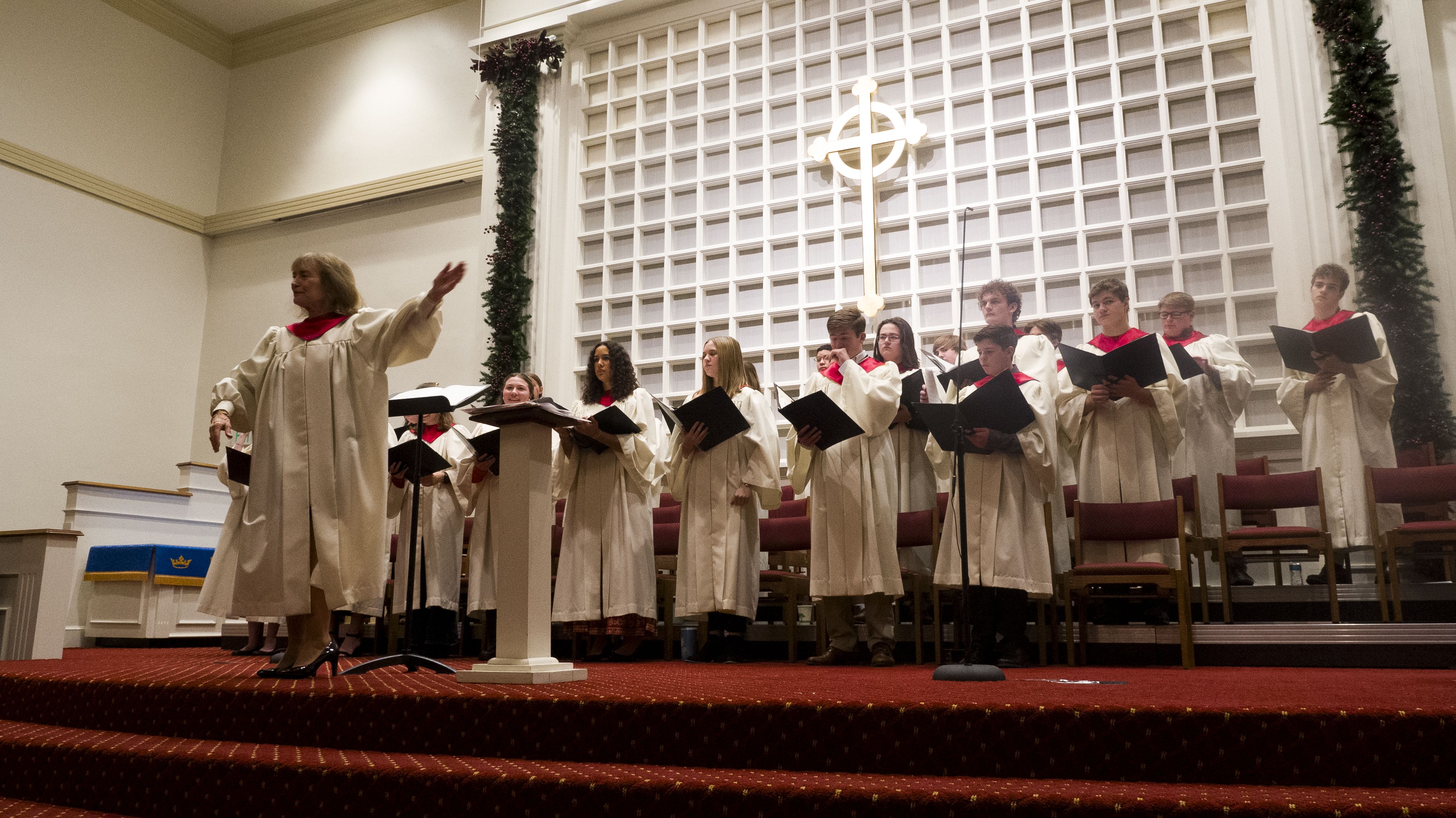 Joy Hire, director of the Angel Choir of First Presbyterian Church, greets each member of her youth choir before rehearsals, and reminds herself that these teens are giving time from their busy days to sing and share sacred songs.